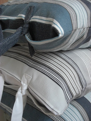 ... men eftersom kuddtillverkning är det jag ägnar mig åt när jag har en stund över så blir det mycket kuddar här. Vilken dag vi har haft förresten! Kaffepremiär på altanen med värmande sol i ansiktet. Fantastiskt!